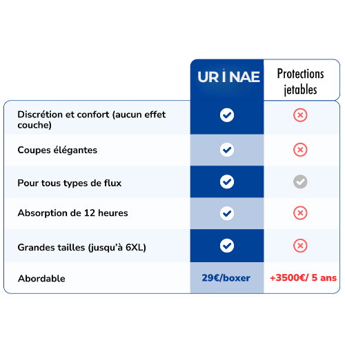 Nos boxers ultra-absorbants pour l’incontinence sont conçus pour durer, avec un design réutilisable qui tient en moyenne entre 3 et 5 ans.